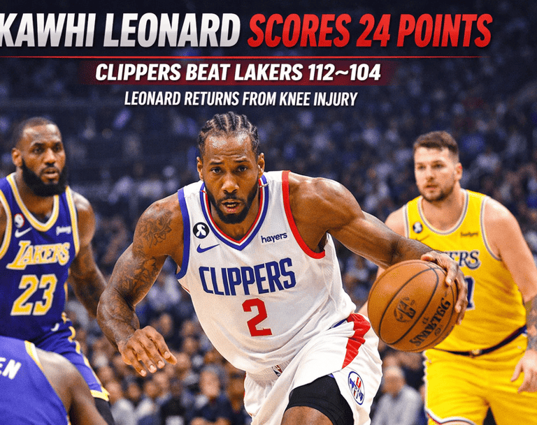 Kawhi Leonard returns from injury with 24 points as the Clippers defeat the Lakers 112–104. Highlights, stats, and key moments inside